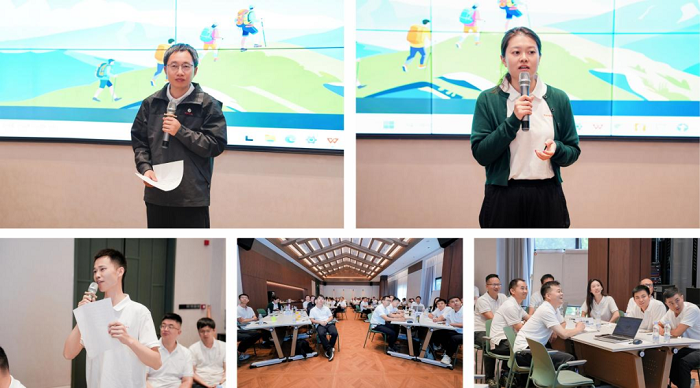 出征仪式后,8支队伍整装出发,向武功山金顶进发。陡峭的山路考验着体力,面对“心有千千结”、“穿越1.6米封锁线”等团队挑战,队员们默契协作、集思广益,以智慧和凝聚力逐一突破难关。最终,各团队在规定的时间内顺利抵达金顶。6月6日晚在金顶露营区,参训人员结合白天徒步训练中的协作实践,顺利获得案例分享、互动研讨等形式召开当日复盘总结。现场讨论热烈,管理智慧在思想碰撞中持续升华,为团队迎接未来开展挑战凝聚了共识与力量。