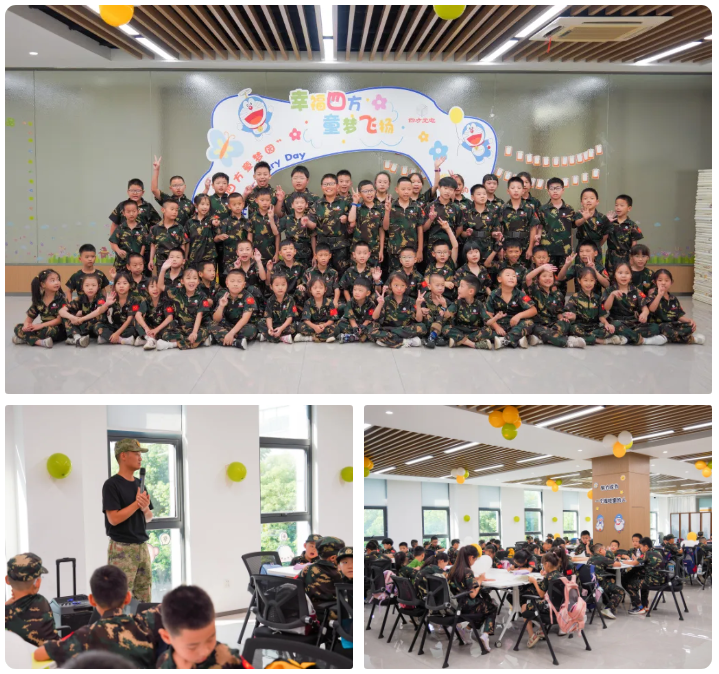 夏令营现场布置精心,彩色气球、卡通形象与励志标语营造出专业而温馨的托育氛围。本次夏令营邀请了专业的素质拓展培训组织,开营仪式上,教官团队热情迎接每一位小营员,并强调了组织纪律性,寄语孩子们在快乐中收获成长。
