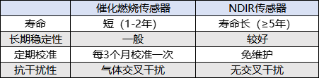 随着催化剂老化,传感器零点输出值会随时间变化,需要定期校准;而催化剂活性降低、探头反应物沉积和腐蚀,这些不可逆过程造成的线性漂移,使传感器即使完成校准,长期稳定性也会降低;涂布机内含的硅、硫化氢和铅,则会使传感器中毒,缩短其寿命;此外,催化燃烧传感器对多种可燃气体均有响应,不具备选择性。